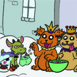 For this month’s second coloring page, I took some of the reference art that I created for the Puppy Mech from the current storyline and cleaned it up for prime coloring fun! Last month’s coloring page using the cover art lacks the lumpy puppy mech feet because they’re behind the Princess Pups. These feet are a delight and need to be colored by you!