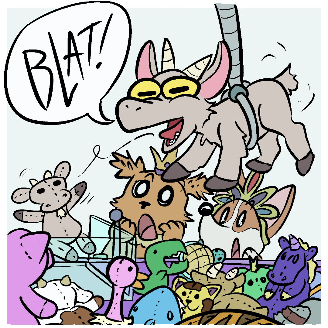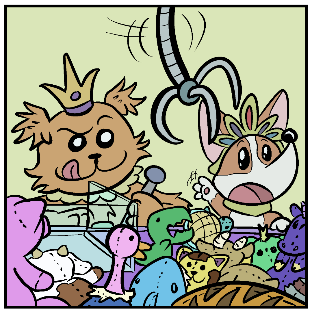 The pups love to play arcade games and crane games are a favorite! Scruffy Pup is pretty good at nabbing prizes, even unexpected ones sometimes...